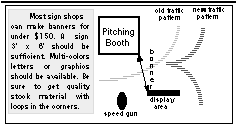 Unhappy with paying over $1,500 for vendor space at the "Great" New York State Fair, I decided to do an end around to get in at a rate I'm comfortable with; a straight percentage. I normally rent space at the fairs sports fest tent but this year I arranged a promotion with a regional radio station to make the booth part of their promo. The Syracuse rock station 95X always has their "Rock Box" on location at the fair. This year they had a special promotion where a raffle winner got tickets to Cal Ripkens record breaking game.My pitching booth was an obvious tie in with their promo. I arranged to give 20% of my take to the station but they did one better by giving that money to the Make-A-Wish foundation. I also received free radio promos and did an on air pitching contest.